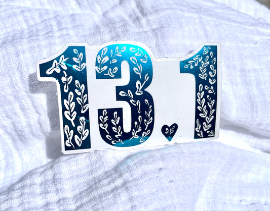 13.1 half marathon sticker, half marathon runner sticker, 13.1 decal, blue foil half marathon, half marathon runner