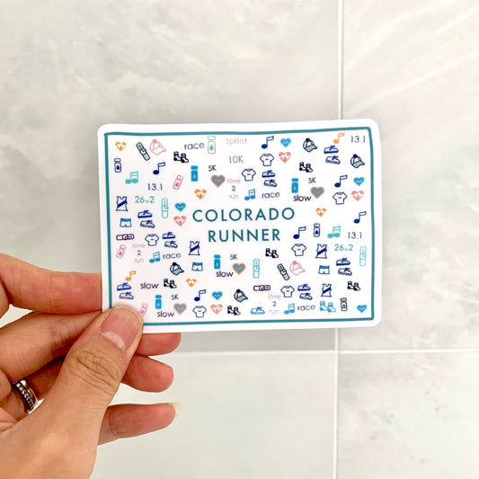 Colorado runner sticker, CO Runner, Colorado marathon runner sticker, Colorado track and field sticker, 50 state runner sticker