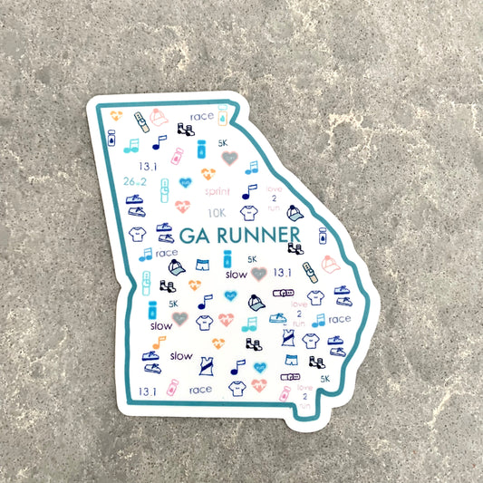 Georgia runner sticker, GA Runner, Georgia marathon runner sticker, Georgia track and field sticker, 50 state runner sticker