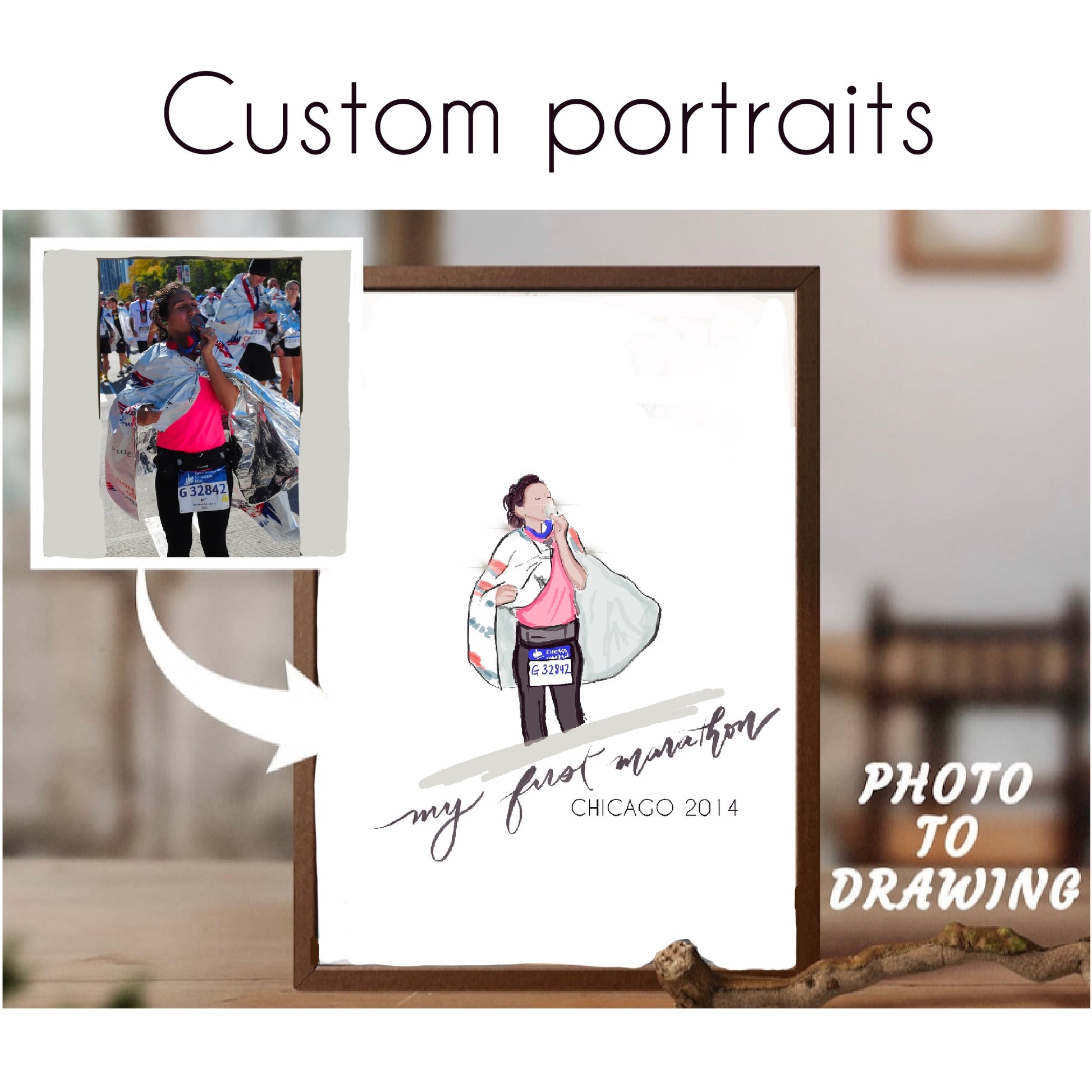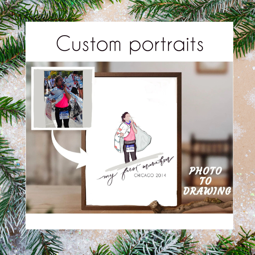 What: Custom art portraits (illustrated by me!) to help you commemorate your favorite running memories or life moments!