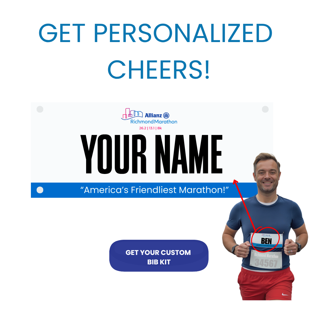 This name bib kit would be perfect for the Richmond Marathon race weekend to get energy from spectators. Richmond Marathon is America's Friendliest Marathon!