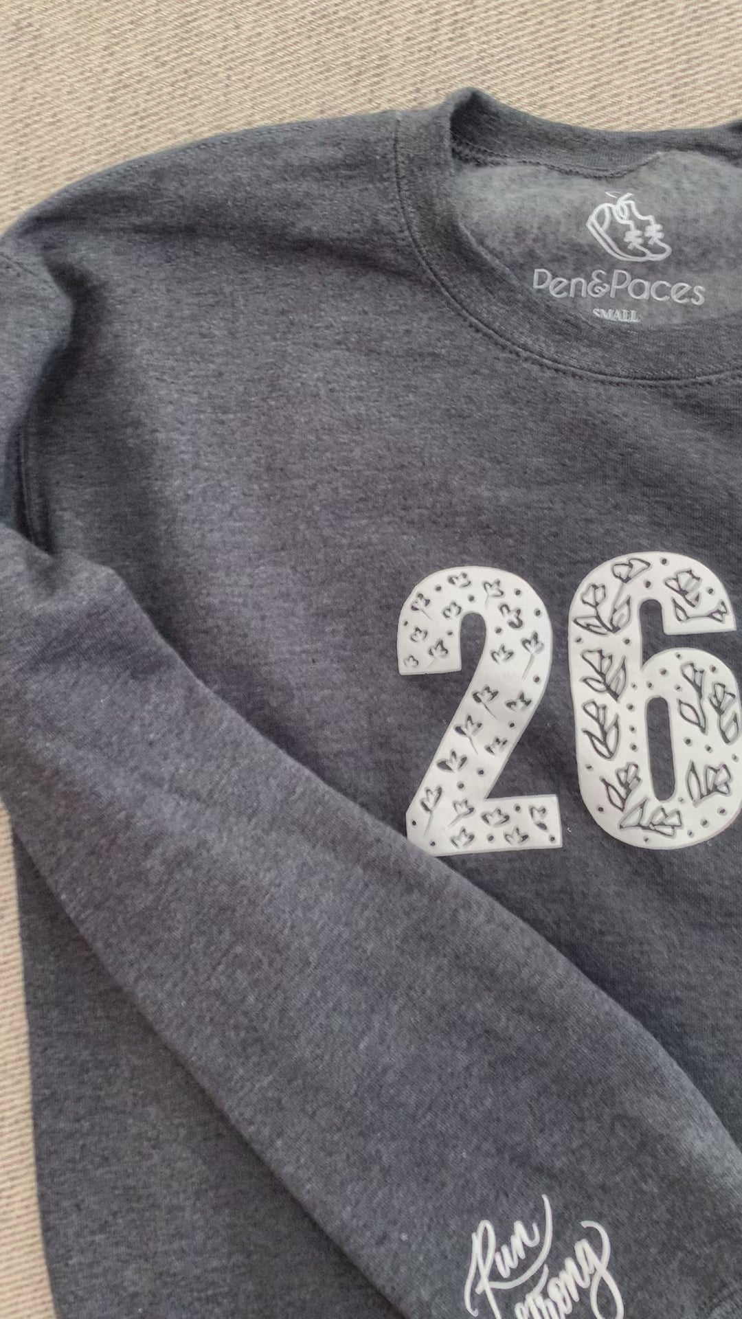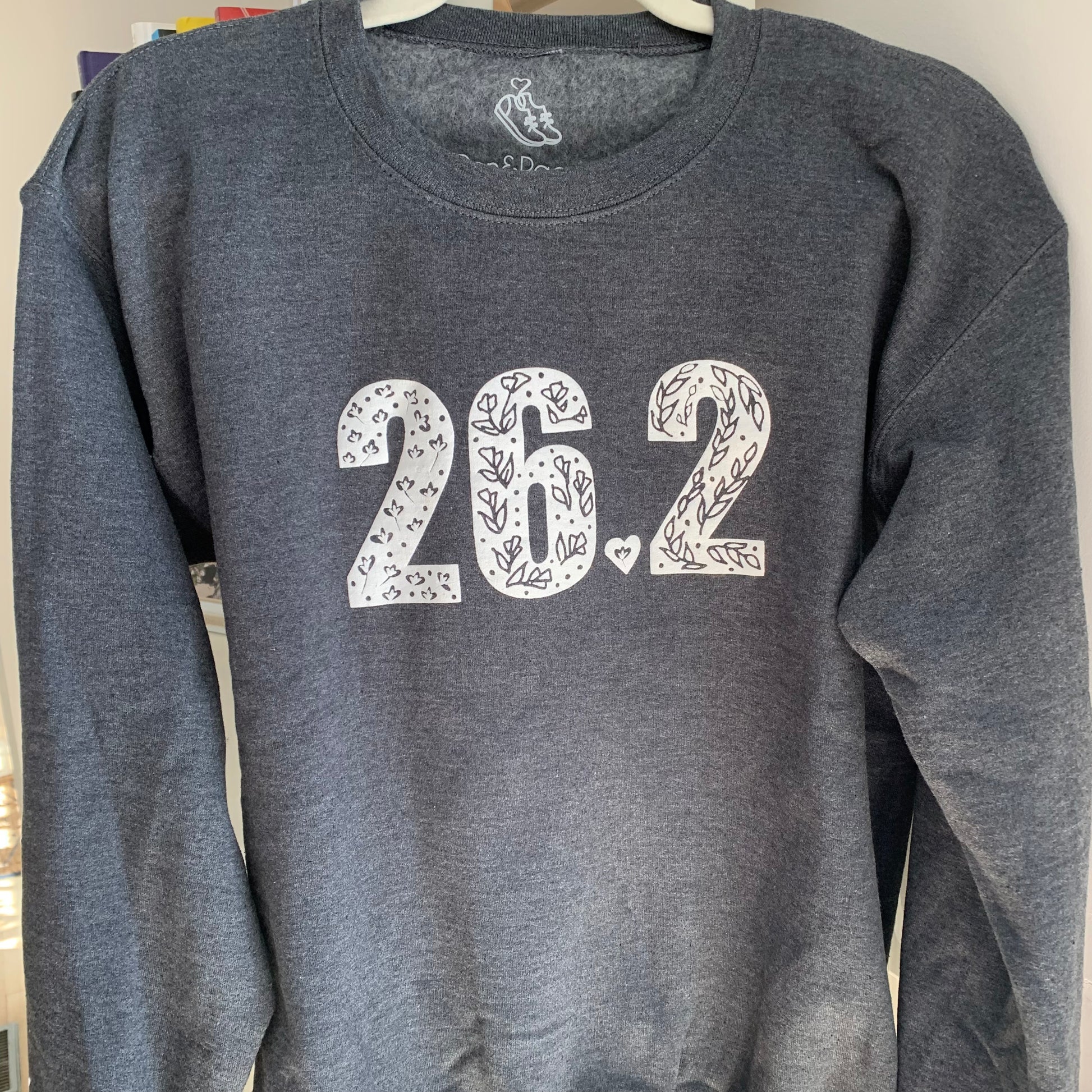 Training for and finishing a marathon is a HUGE accomplishment. It takes time, focus, sacrifice and commitment. Take pride in all the little details of 26.2 with this Pen and Paces custom designed sweatshirt that you can wear and be proud of your amazing marathon accomplishment.