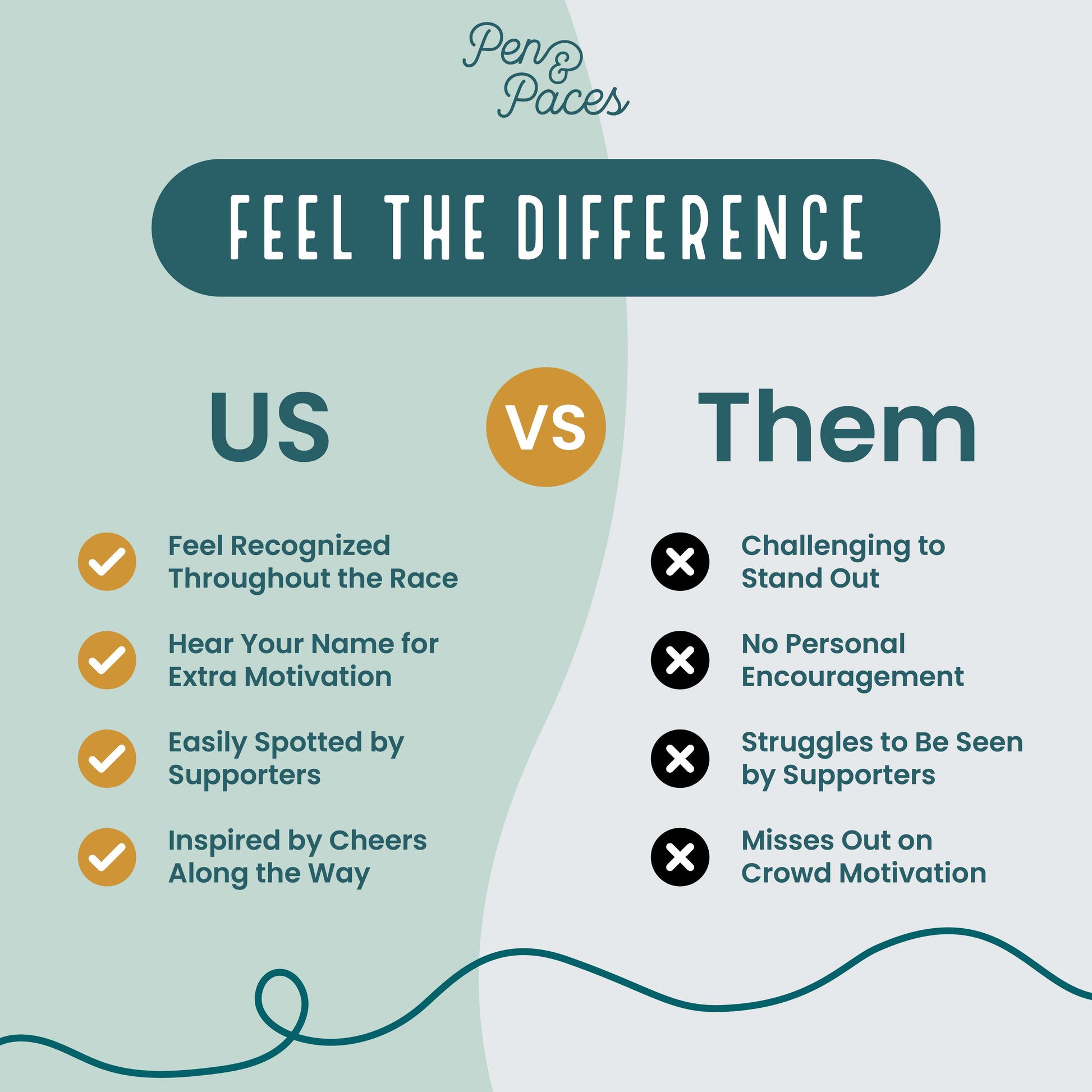 No more sharpie-on-shirt or duct tape hacks. This kit was designed by runners who know how much it means to hear your name yelled from the sidelines when you're deep in the pain cave.